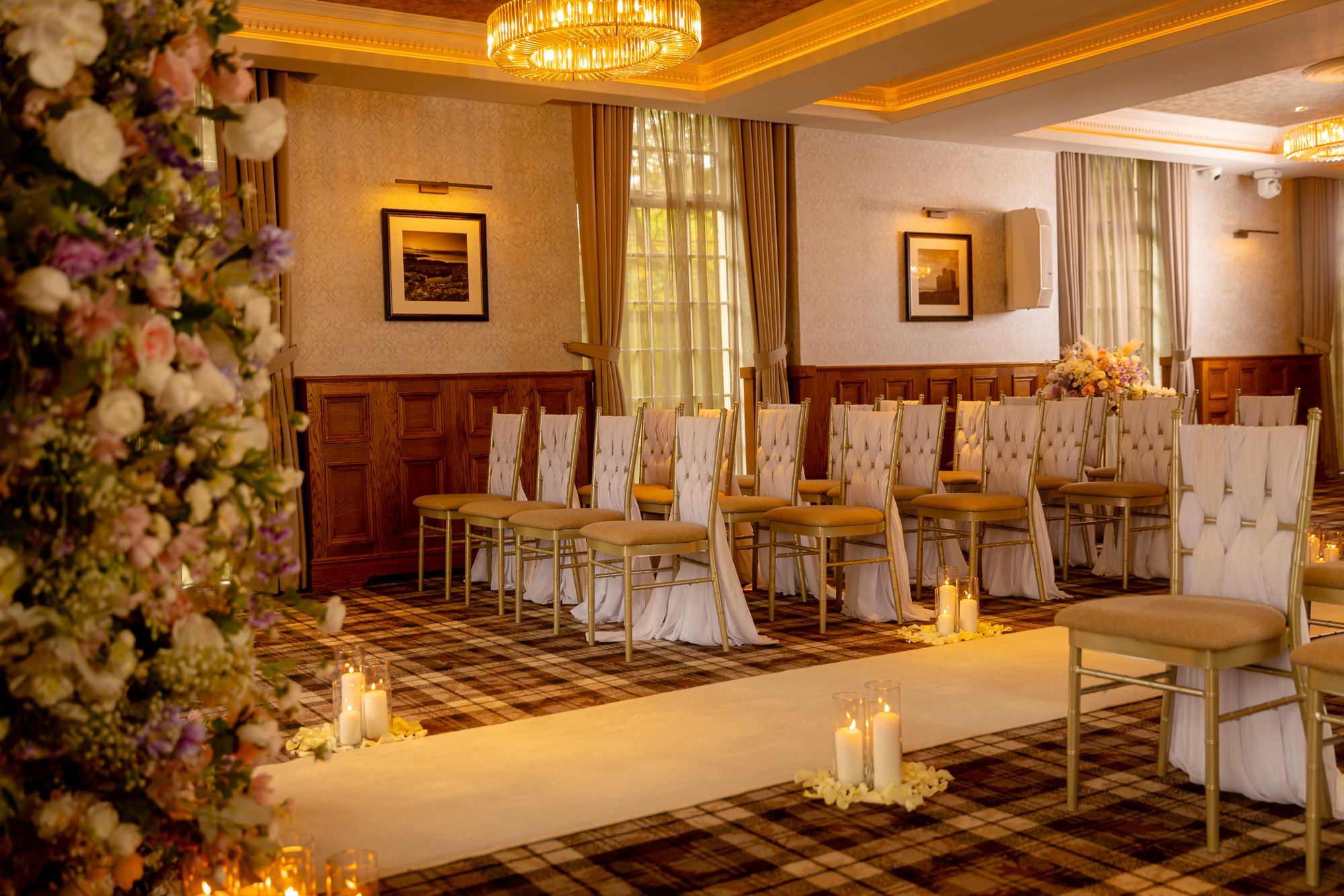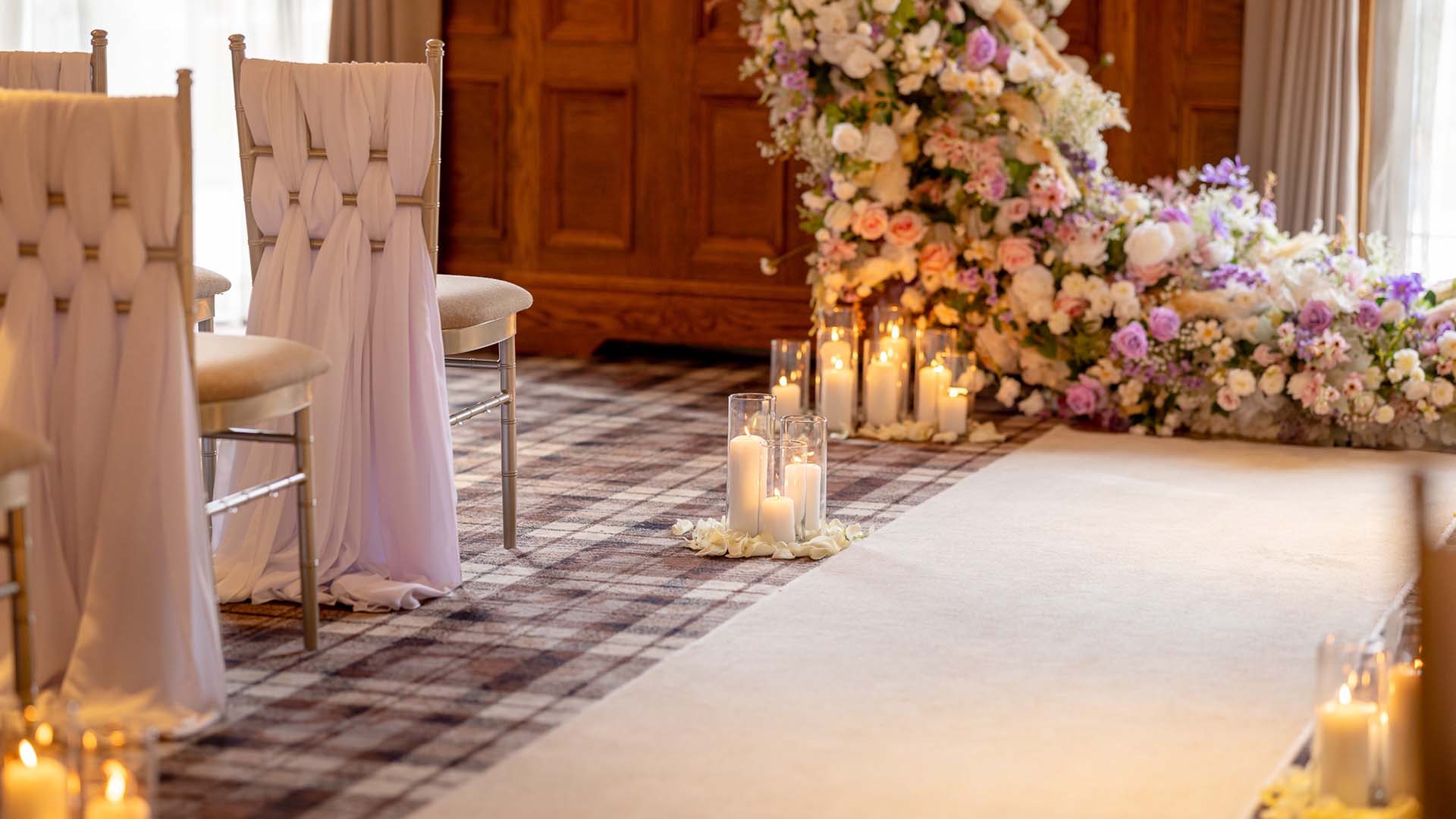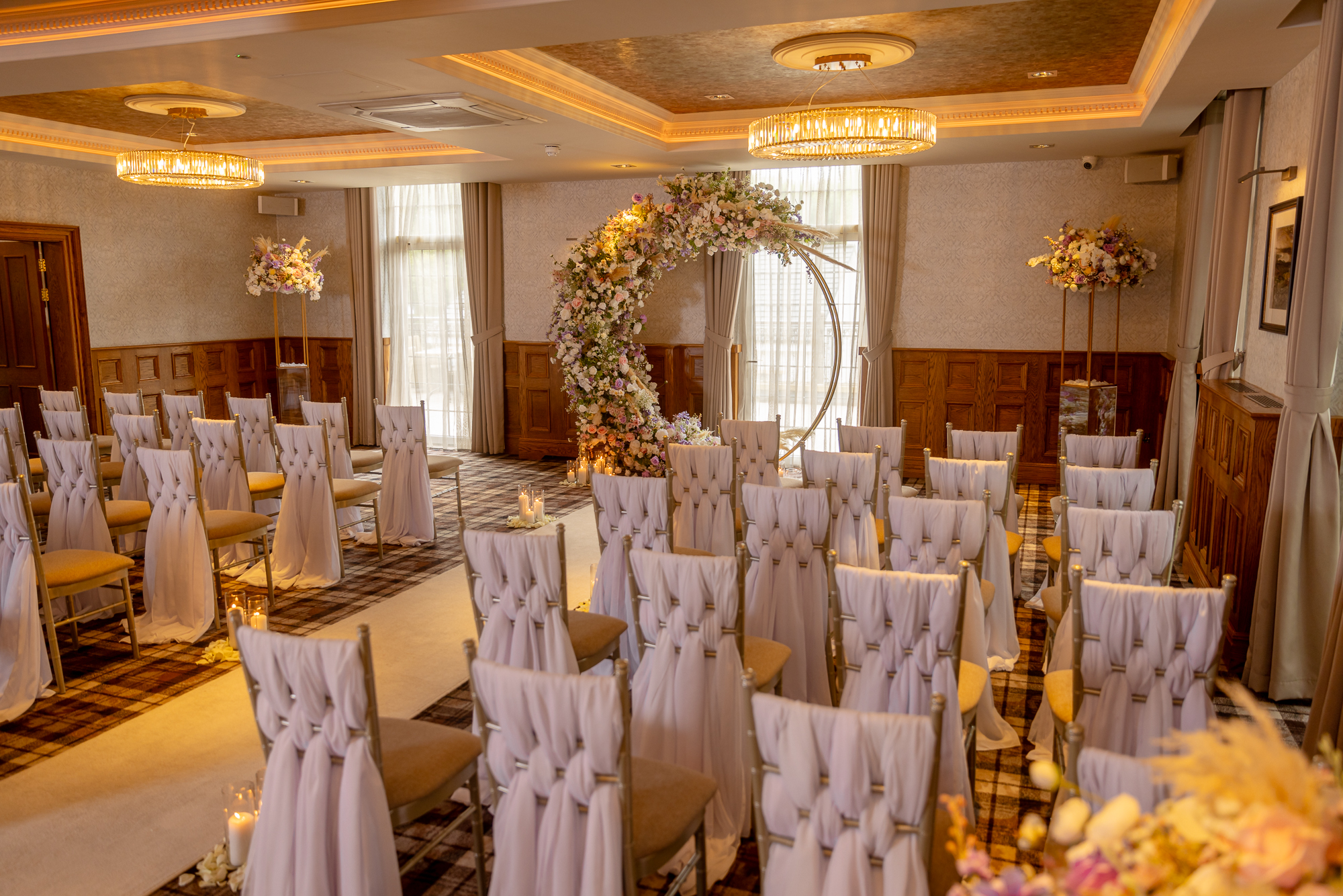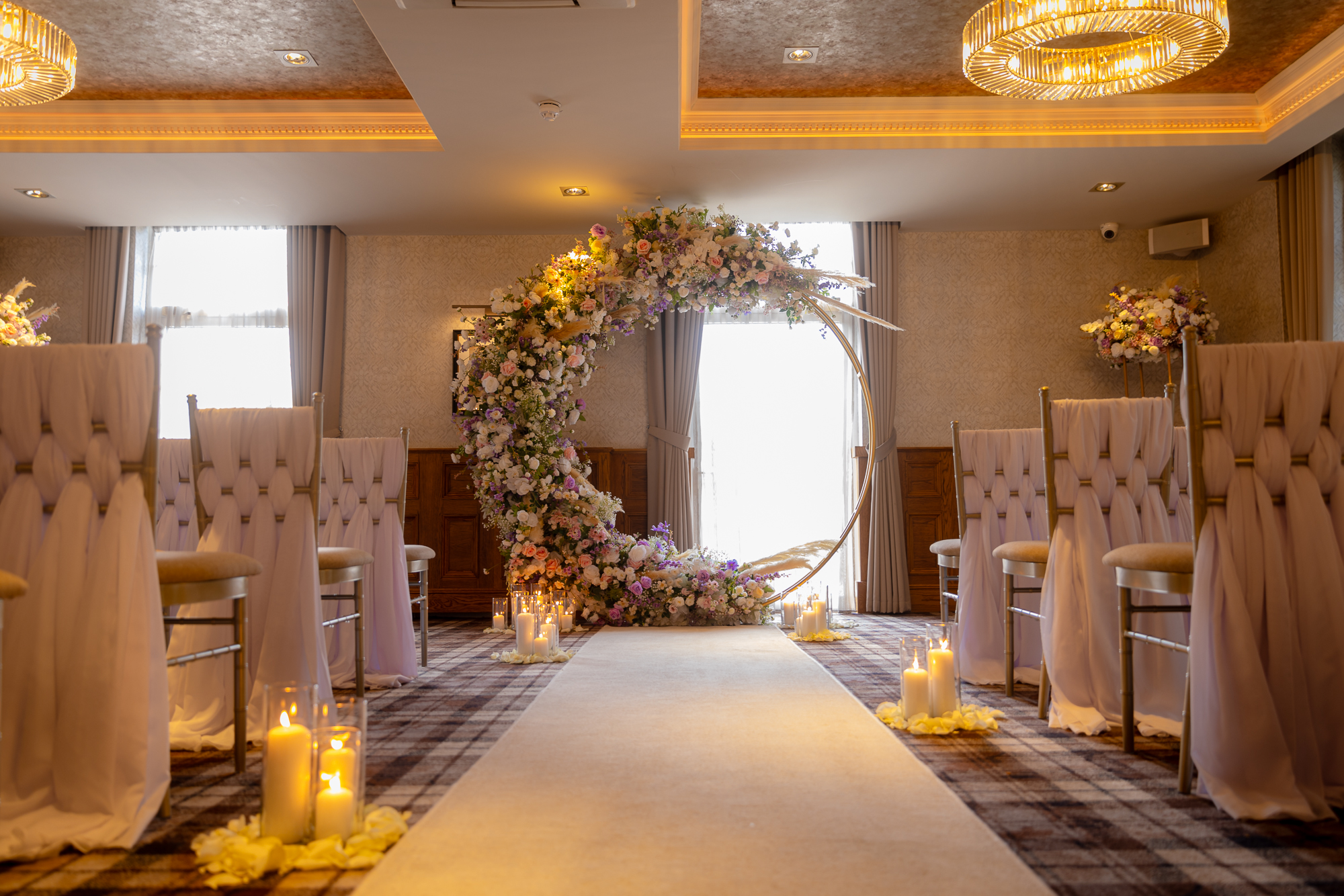 As a general rule across all our wedding venues, we can accommodate having your pet here for pictures on our venue grounds after your ceremony. And although pets are not allowed inside the venue at these times, we can recommend some luxury options for them to stay the night. You can discuss pet arrangements with your dedicated wedding planner or the venue manager.