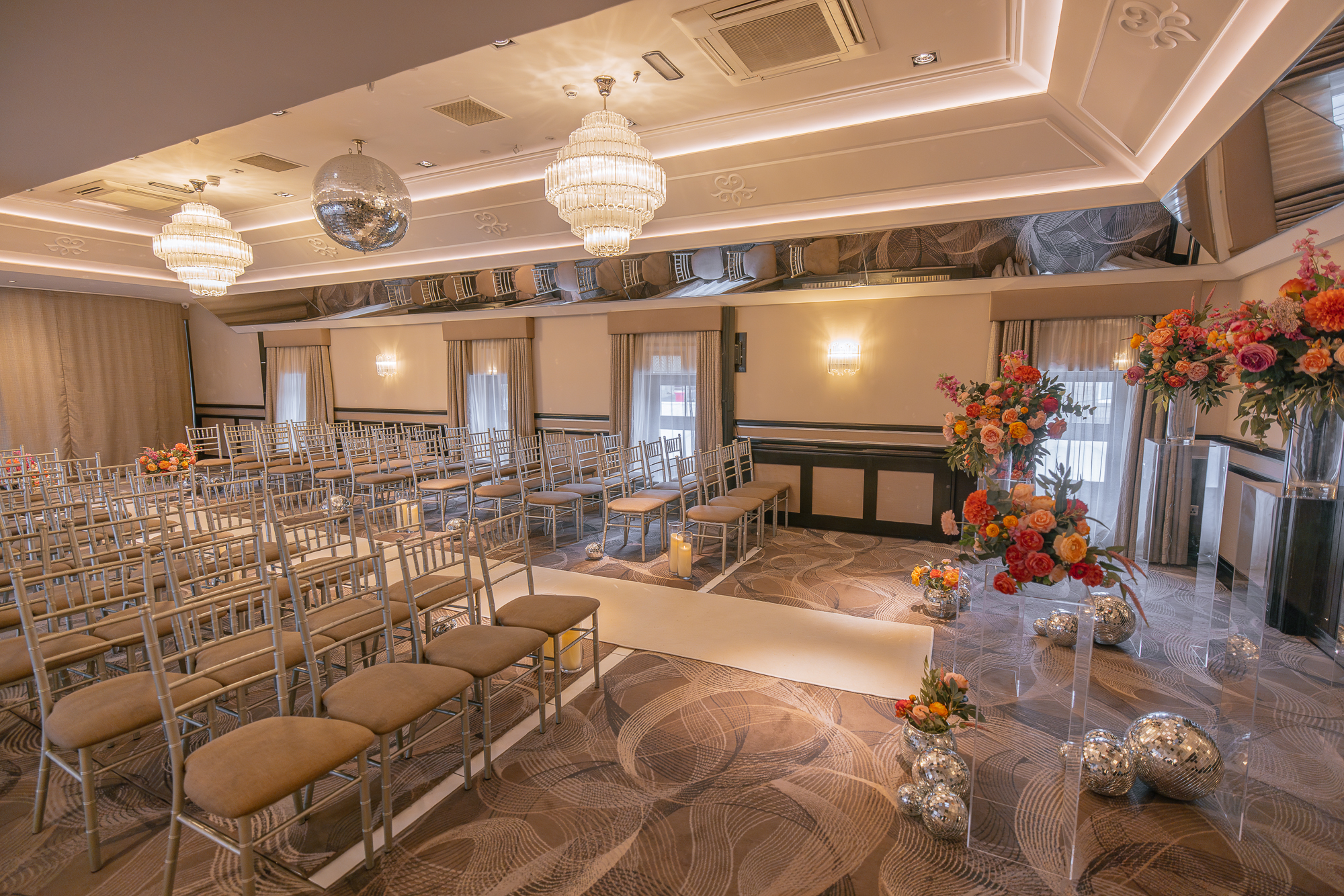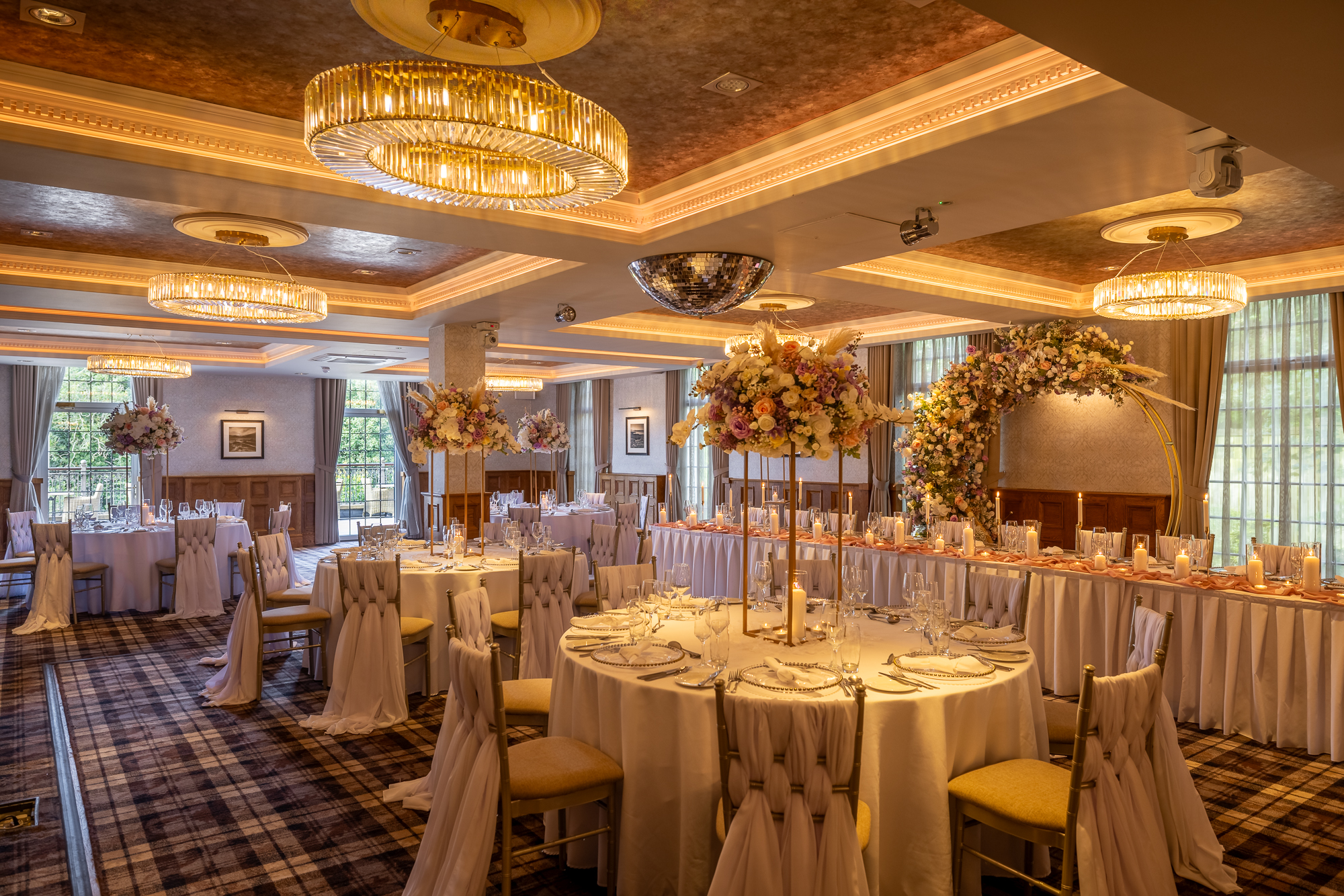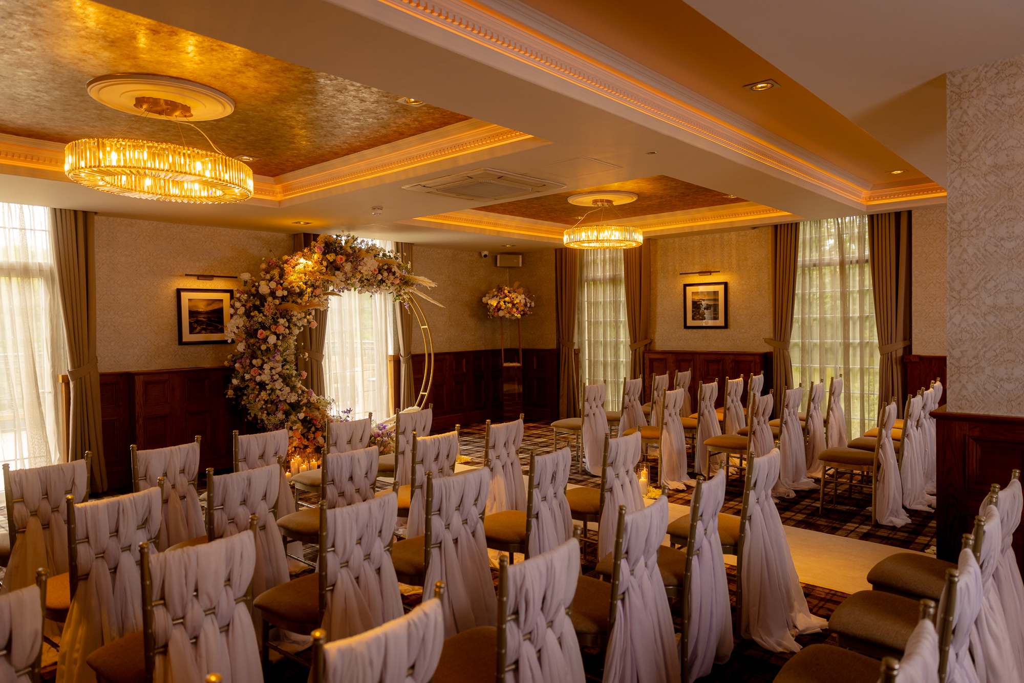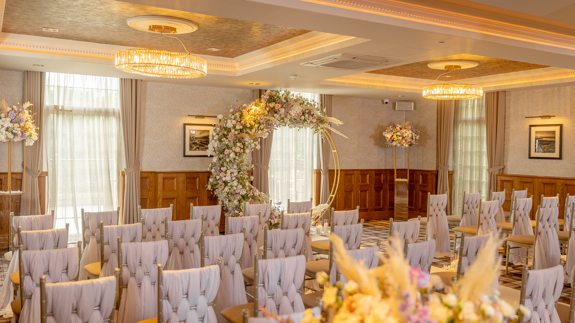 As a general rule across all our wedding venues, we can accommodate having your pet here for pictures on our venue grounds after your ceremony. And although pets are not allowed inside the venue at these times, we can recommend some luxury options for them to stay the night. You can discuss pet arrangements with your dedicated wedding planner or the venue manager.
