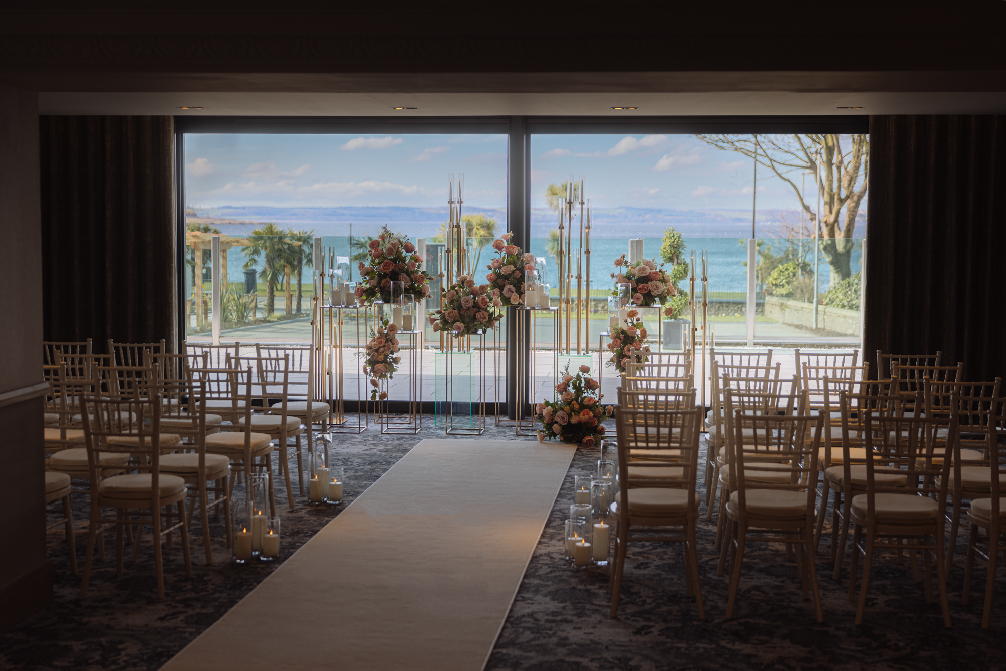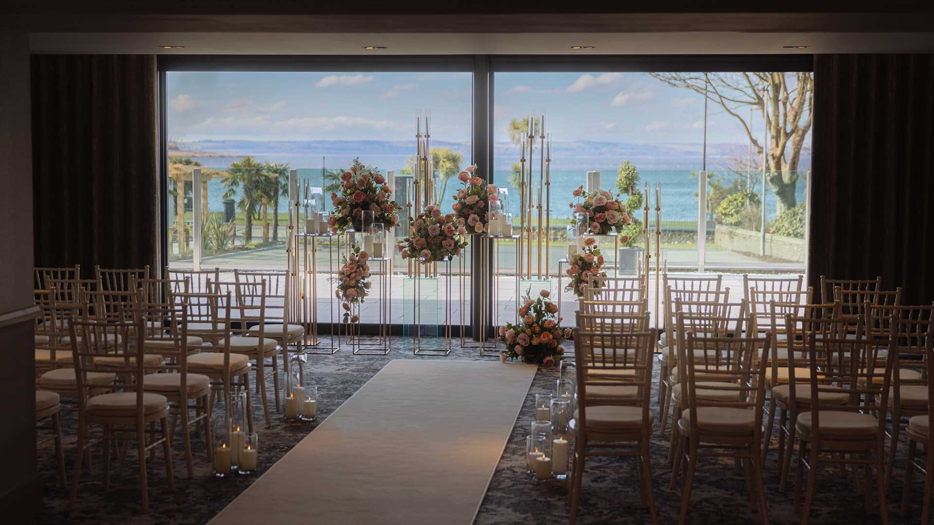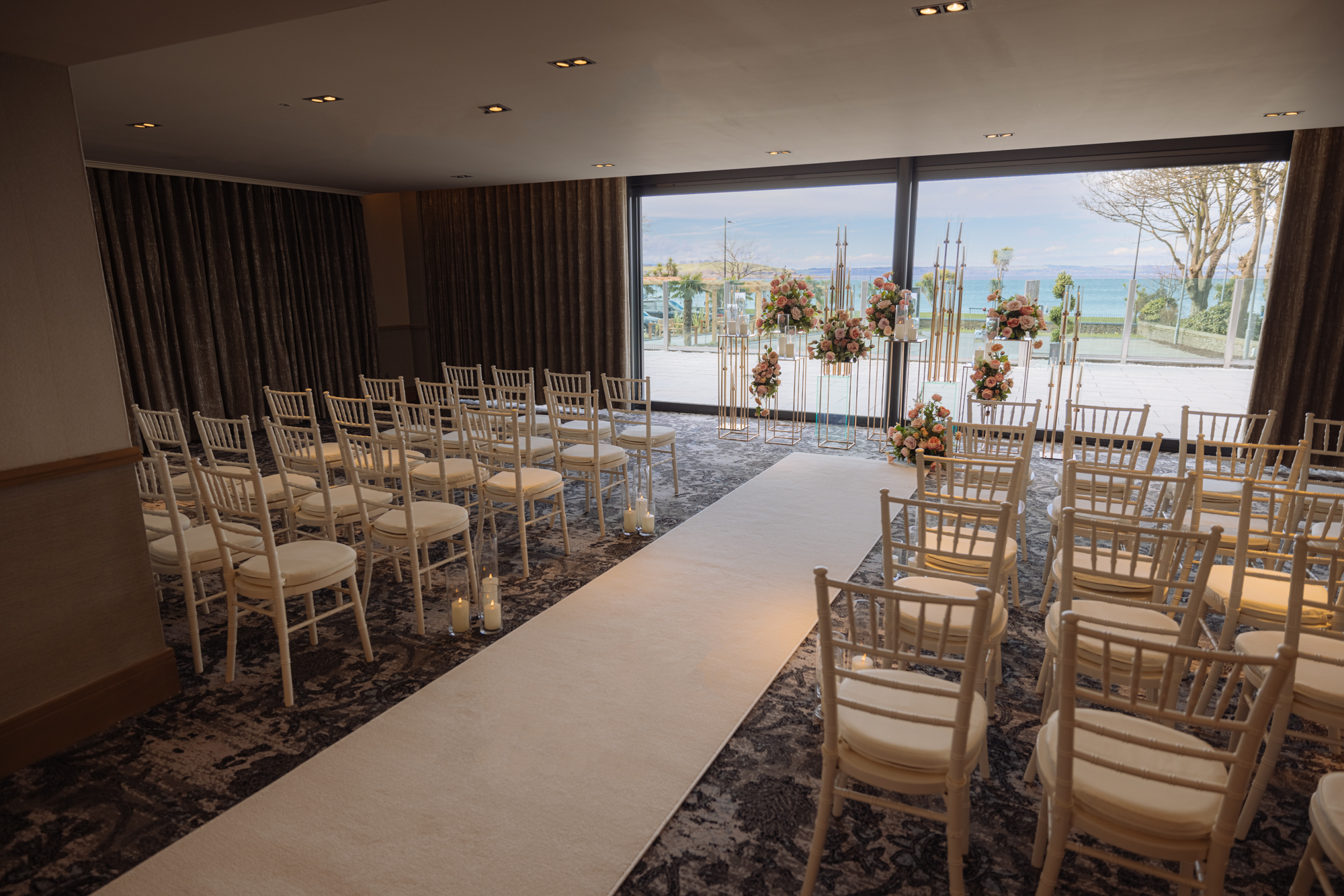 A modern seaside hotel on a beach-front location in West Scotland, with our jaw-dropping duplex honeymoon suite, refurbished ceremony and reception room overlooking the Clyde, and new dedicated wedding prep room.
