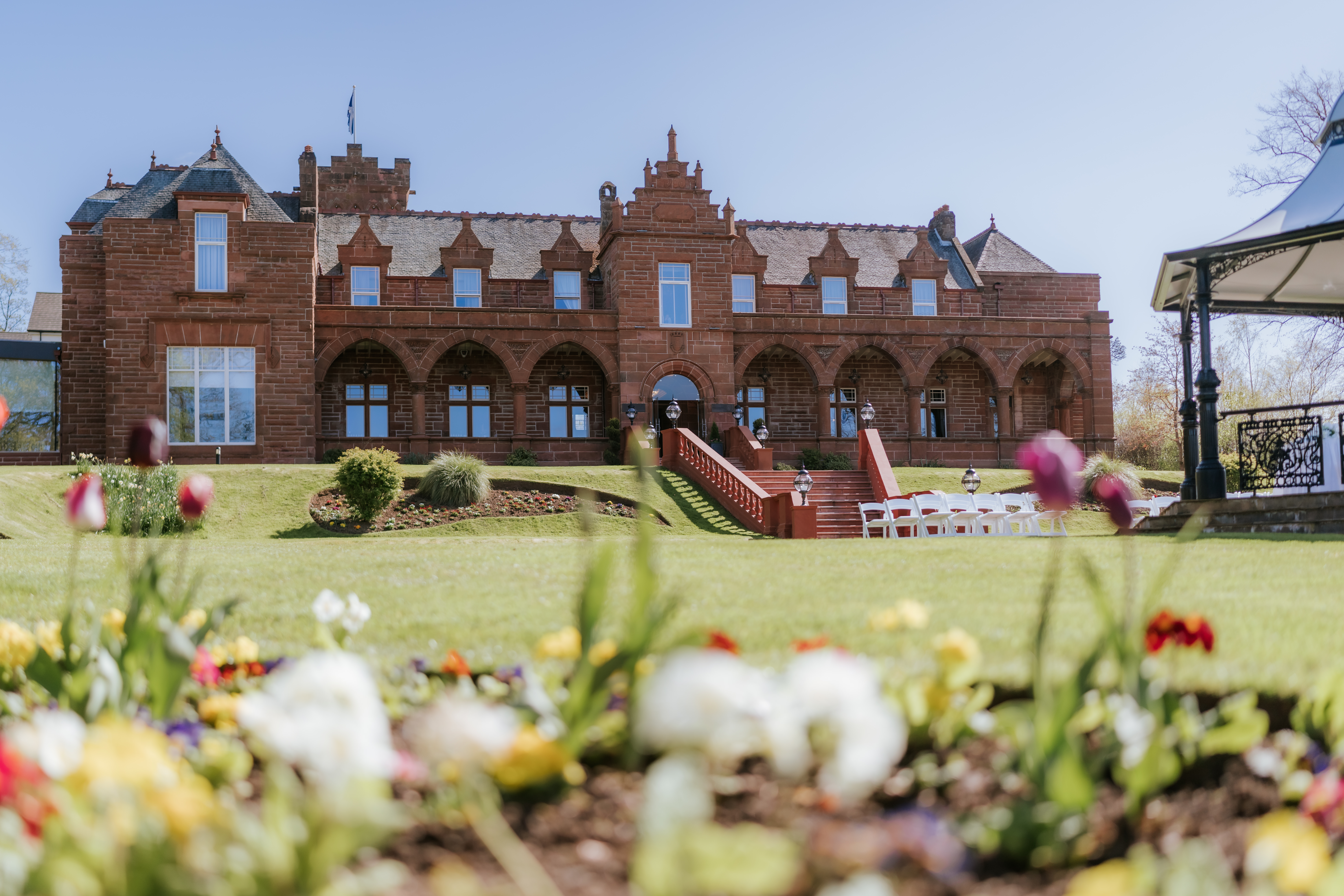 An enchanting castle set in the Scottish countryside. With ceremony pavilion, stunning ballroom, and unique honeymoon suite.